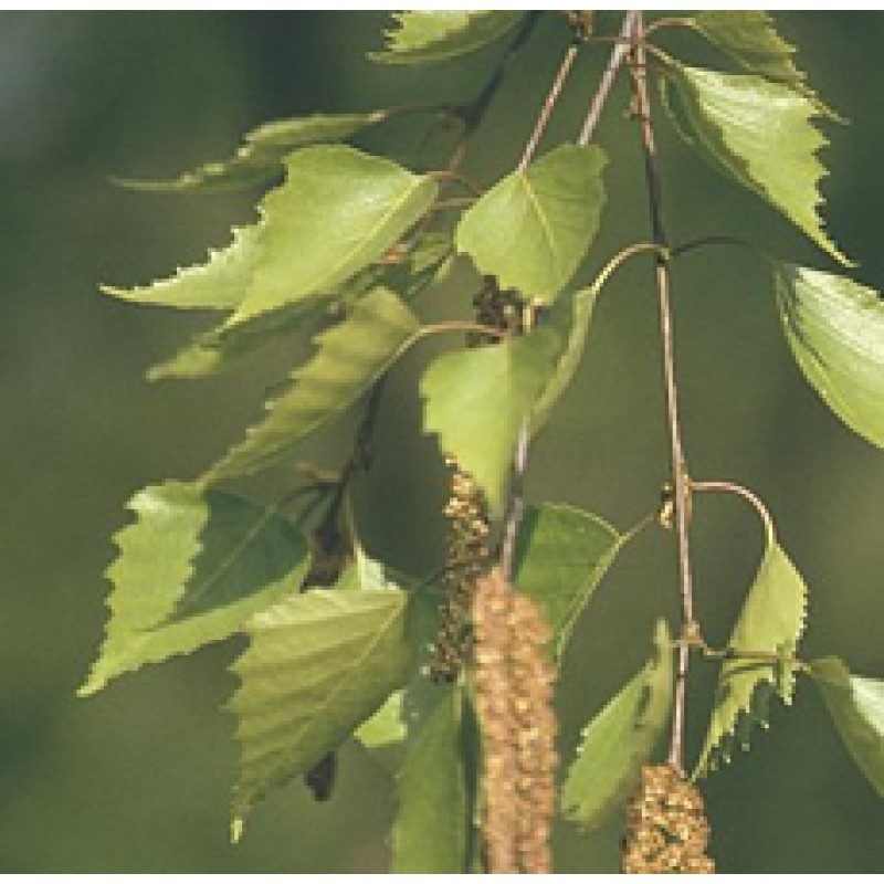 The birch tree is native to North America and grows up to 15-20 meters in height. It has slender branches, silver-white bark broken into scales and light green oval leaves.