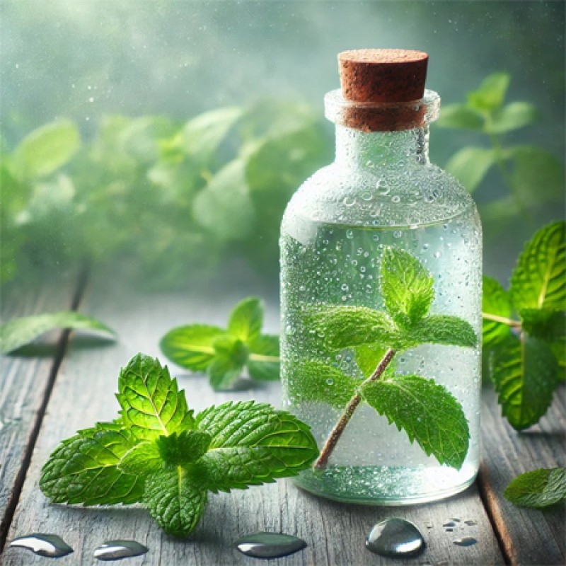 Peppermint distillate water is known for its refreshing, stimulating, and toning properties. It invigorates and purifies particularly oily skin. It can be used to treat razor burn or as a deodorant. It is excellent at cleaning the skin and tightening the