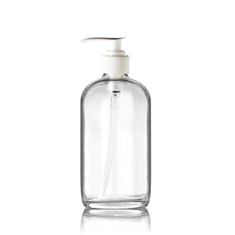 8 OZ Boston Glass Bottle With White Lotion Pump