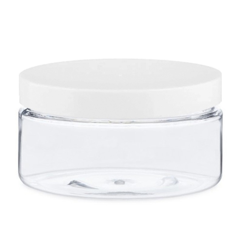 250 ml (8 OZ) HEAVY WALL PET CLEAR JAR 89-400 8 Oz Clear Pet Jar With White Cap. These jars are available in different styles and colors. They are perfect for storing creams, body butters, balms and much more.