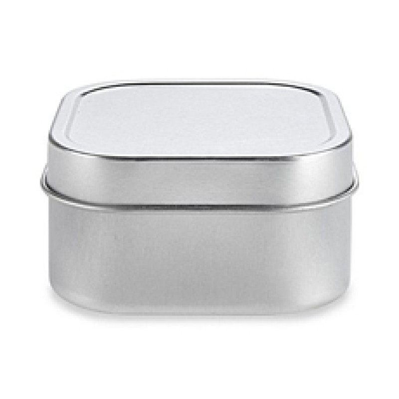 Each 4 oz (120 ml) square tin-plated steel Metal Tin comes with slip cover lids. Our tins can be used for a variety of applications from candle and cosmetic to candies and mints. All tins have rolled edges. As always, be sure to test these tins with your products for proper compatibility.
