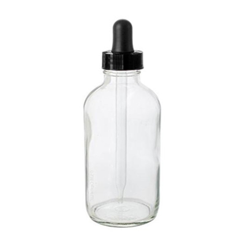 4 Oz Clear Glass Bottle With Black Dropper. These clear glass boston round bottle comes with black glass dropper. These amber glass bottles could be a good choice for dispensing and safely packaging tinctures, serums, liquid food products.