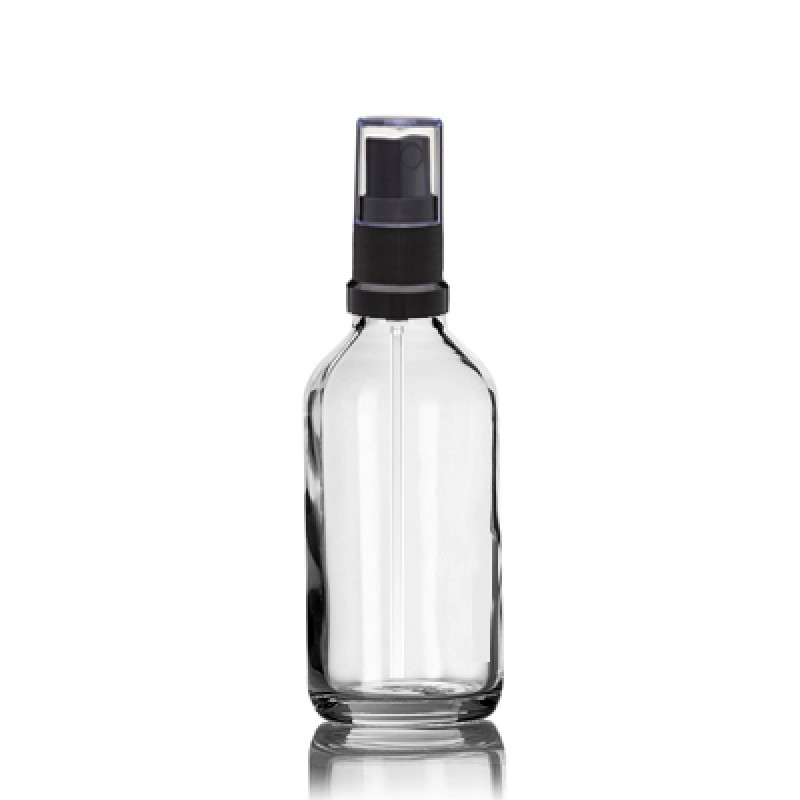 60 mL (2 oz) clear glass round euro bottle with 18-MM neck finish comes with black 18mm sprayer. It is specifically designed to be fitted with tamper-evident, child-resistant caps, droppers, and sprayers dropper. Glass has high clarity, can be colored, has high chemical-resistance levels, and has extremely high resistance to heat and cold. It is great for where products need to be showing actual colour of the products and storing essential oils, tinctures, perfumes, body mists and any other skin care and hair care products which stand out on the shelves.