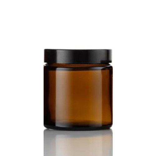 4 Oz Amber Glass Jar With Black Smooth Lined Cap