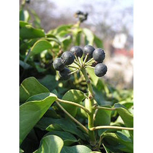 Hedera helix (Common Ivy) is a species of ivy native to most of Europe, from Ireland northeast to southern Scandinavia, south to Spain, and east to Ukraine and also northern Turkey in southwestern Asia. The northern and eastern limits are at about the -2°C winter isotherm, while to the west and southwest, it is replaced by other species of ivy. In the past, the leaves and berries were taken orally as an expectorant to treat cough and bronchitis. In 1597, the British herbalist John Gerard recommended water infused with ivy leaves as a wash for sore or watering eyes. Because of toxins also contained in the plant, it should only be used under the consultation of a qualified practitioner. The leaves can cause severe contact dermatitis in some people.