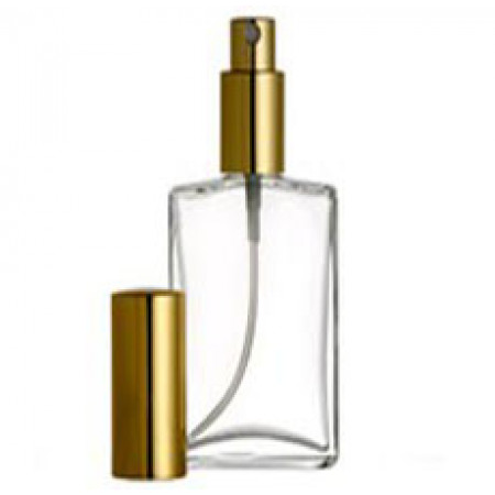 2 oz glass bottle with gold automizer.