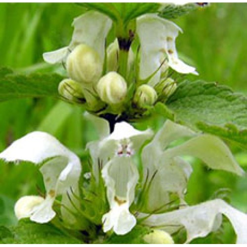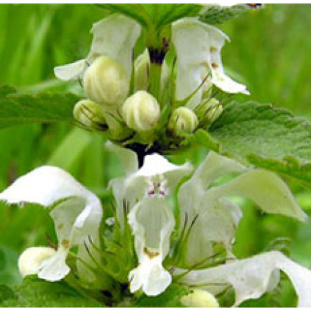 Lamium album (White Deadnettle) is a flowering plant in the family Lamiaceae, native throughout Europe and western Asia, growing in a variety of habitats from open grassland to woodland, generally on moist, fertile soils. The young leaves are edible, and can be used in salads or cooked as a vegetable. The plant is also used in herbal medicine, for example as a dermatological remedy. Bees are attracted to the flowers which contain nectar or pollen, hence the plant is sometimes called the Bee Nettle. It was introduced to North America, where it is widely naturalized.